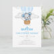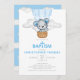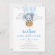 Blue Bear Hot Air Balloon Boy Baptism Invitation avec mignon ours bleu dans une montgolfière bleue.