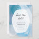 Cette unique enregistrer la date dispose d'aquarelle abstraite dans les tons bleu turquoise.