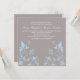 Beurre doux et dainty Faire-part de mariage florale avec un arrière - plan gris poussiéreux muet et papillons bleu clair et ornements de vigne fleurie. Cet élégant invitation de mariage est le choix idéal pour un mariage moderne et chic. Facile à customiser, ajoutez simplement les détails de votre mariage dans les champs de texte fournis. Cliquez sur le bouton "Customiser" pour trouver d'autres options de personnalisation.