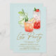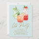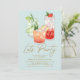 Invitations de fête d'anniversaire pour adultes avec des illustrations d'aquarelle de cocktails colorés et le texte du script "Let's Party". Le texte de l'anniversaire peut être modifié pour n'importe quel événement d'été ou cocktail. Police couleur or sur un arrière - plan bleu pastel.