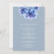 Cette élégante invitation de mariage fleurie aquarelle bleu poussière peut être personnalisée avec vos informations dans une typographie chic et toutes vos informations spéciales de jour de mariage au verso, y compris votre RSVP, hébergement et détails supplémentaires. Conçu par Thisisnotme©