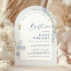 Célébrez le jour spécial de votre petit avec ce faire-part de baptême pour garçon à l'arche florale de delphiniums bleus poussiéreux. Conçu avec des fleurs de delphinium à l'aquarelle bleu clair, des accents dorés élégants et une mise en page intemporelle en forme d'arche, ce design classique apporte une touche raffinée et significative à votre célébration de baptême ou de christening. Parfait pour inviter la famille et les amis, ce faire-part éditable donne le ton pour une journée belle et mémorable.
