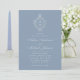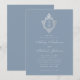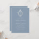Invitation Bleu Poussiéreux Monogramme Vintage Blason Floral