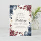Invitation Bleu profond Bourgogne Floral Mariage