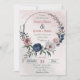 Belle faire-part de mariage botanique avec fleurs rose, blanche et bleu marine avec feuilles verts sur un cercle vert formant une jolie couronne romantique. Il convient aussi bien aux invitations mariages qu'aux fiançailles. POUR PLUS DE PRODUITS CORRESPONDANTS cliquez sur la collection ci-dessus ou contactez-moi.