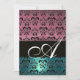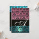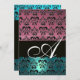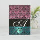 Invitation BLEU ROSE NOIR DAMASK MONOGRAM, blanc brillant