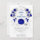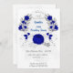 Fleurs royales romantiques bleues & blanches avec des invitations feuilles d'anniversaire botanique argent. Les détails de la parties scintillant sont simulés.