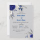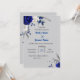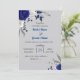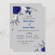 Invitation bleu royal fleurs blanches feuille gris mariage