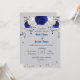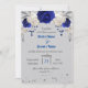 Invitation bleu royal fleurs blanches feuille gris mariage