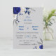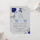 Invitation bleu royal fleurs blanches gris feuilles enregistr