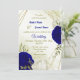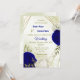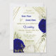 Invitation bleu royal fleurs blanches vert feuille mariage