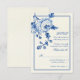 Invitation Bleu Royal Ivoire Toile Floral Mariage Réponse RSV
