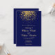 Cette élégante faire-part de mariage moderne arbore une touche de confettis doré sur un riche arrière - plan bleu royal.