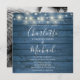 Invitation Bleu Rustique Bois Chaîne Lumières Mariage Photo