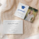 Cette invitation à la remise des diplômes présente un thème simple noir et blanc avec un casquette bleu et un goût d'or. Ajoutez une photo et un texte de personnaliser sur le devant et le dos pour inclure tous les détails de votre fête de remise de diplômes.