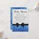 Blue Sparkle-look Bow avec parties scintillant-look en blanc et un ruban noir arc. Une invitation élégante et festive pour le baby shower du garçon avec flair et mode.