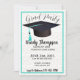 L'invitation à la graduation moderne présente un moule bleu turquoise sur la casquette noire et est découpée dans une bande turquoise avec parties scintillant or et un arrière - plan blanc. Le dos de l'invitation est blanc avec la même parties scintillant d'or et il ya des porte-places pour deux de vos photos préférées du diplômé d'être. Les images sont découpées dans un cadre turquoise et une bande turquoise entoure le bord. Ces invitations de fête sont parfaites pour les diplômés dont les couleurs de l'école sont turquoise ou turquoise et noir.