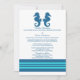 Élégant et classique Faire-part de mariage nautique avec une paire d'hippocampes simples et un éventail de rayures dans bleu marine foncé et turquoise. Cet invitation à thème de plage nautique peut être facilement customisé avec vos détails de mariage. Pour plus d'options de personnalisation, cliquez sur le bouton Customiser.