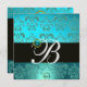 Invitation BLEU TURQUOISE NOIR DAMAS MONOGRAMME , aigue-marin