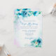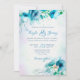Bleu turquoise fleurs vertes faire-part de mariage instantané téléchargement modèle avec QR RSVP à l'arrière, le tout dans une invitation.