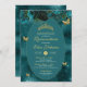 Invitation Bleu turquoise Vert Or Papillon de luxe Quinceaner
