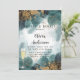 Invitation Bleu vert doré Peinture Agate Brunch et Bubbly