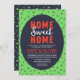 Célébration de votre nouvelle maison avec une fête de réchauffement de la maison. Invitations amis et la famille avec cette invitation de la fête du ménage avec les mots "Home Sweet Home" et moderne dynamique triangles vert et bleu triangles arrière - plan motif. Personnalisez cette invitation en remplaçant le texte de l'espace réservé dans le modèle. Pour plus d'options comme changer la police et sa taille, cliquez sur le bouton "Customiser". Cette invitation comprend également un côté arrière à motifs. *Veuillez noter que le filigrane Zazzle qui apparaît dans l'aperçu du zoom n'apparaîtra pas sur le produit imprimé final. © Bois de rose et agrumes