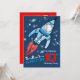 Des garçons graphiques explosent de invitation de fusées spatiales. Idéal pour invitation les copains préférés de votre fils dans l'espace à son anniversaire de naissance dans cet espace mondial thématique 10e anniversaire. Customisez avec vos propres photos de garçons et les détails de la fête et l'âge d'anniversaire à un chiffre différent si nécessaire. Uniquement conçu et illustré par Sarah Trett.