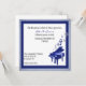 Belle invitation de considérant de piano faite dans un format carré, avec un cadre bleu de deux tons autour des bords. Les graphiques d'un piano à queue bleu, avec les notes musicales bleues et les flocons de neige blancs flottant, décore le côté droit de l'invitation. Tout le texte est personnalisable pour adapter à vos besoins d'événement. Belle manière de présenter votre considérant d'hiver d'étudiants.