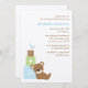 Les invitations à des douches pour bébés simples ou les nouvelles annonces de naissance/d'adoption pour bébés présentent une adorable illustration vectorielle du petit ours brun, d'un oiseau bleu et de quelques blocs de jouets alphabétiques. Disponible en bleu, rose ou vert. Couleurs personnalisées disponibles sur demande.