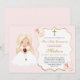 Invitation Blonde haired Girl First Communion Soft Pink