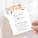Élégante invitation à la douche nuptiale fleurie avec vos détails de douche nuptiale complétés par un script de calligraphie moderne et une bordure supérieure de roses et de feuilles d'aquarelle dans les tons muets de rose, ivoire, mauve et vert. L'envers affiche un arrière - plan rose clair solide. Conçu pour coordonner avec notre collection de mariages Subtle Blooms.