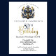 The refined navy blue and shimmering gold color palette creates a luxurious and festive atmosphere, making it an ideal choice for a chic adult birthday celebration by the sea or any nautical-inspired venue. This versatile invitation is perfect for men or women celebrating their fabulous fiftieth birthday in style, whether hosting an elegant dinner, waterfront party, cruise celebration, or seaside soirée.
