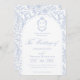 Soft delft blue floral wedding invitation card, designed in a refined blend of chinoiserie and French toile de Jouy style. The soft botanical illustrations frame an arched layout featuring an elegant wedding crest monogram, perfect for couples who love vintage, historic, and European-inspired aesthetics. Classic script typography pairs beautifully with the ceramic-blue palette, making this design an effortless nod to the tradition of “something blue.” Fully customizable with your names, date, and location, it’s an exquisite choice for any romantic or sophisticated wedding theme.