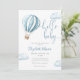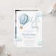 Cette charmante invitation au baby shower comporte une jolie montgolfière bleue et des nuages, ainsi qu'une élégante typographie de script. Avec votre code QR de registre et photo spéciale au verso. Conçu par Thisisnotme©