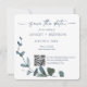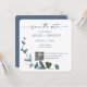 Invitation Blue Botanical Leaf Save the Date w/QR Code+Image