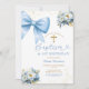 Invitation Blue Bow Coquette Girl Baptism and Birthday Floral