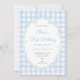 Blue Bow Floral Birthday Boy Blue Gingham Invitation, Grandmillennial Preppy invite for birthday boy