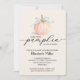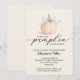 Un mignon petit citrouille attaché avec un ruban bleu met en évidence ces invitations en ivoire mou baby shower garçon avec "Un petit citrouille est en route" et vos détails en lettrage chic. (Disponible aussi en rose et ivoire.) CORRESPONDANCE d'objets dans notre collection.