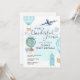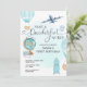 Le premier anniversaire de l'excellent World Travel boy est doté d'avion, passeport, montgolfière, bagages bleus, globe, appareil photo et type de calligraphie du coeur de script.