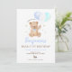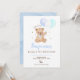 Invitation Blue Boy Teddy Bear Balloon First Birthday