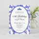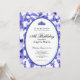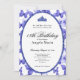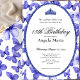 This elegant blue and white 18th birthday invitation has blue butterflies, a blue tiara crown, and a blue glitter oval with a personalizable template to create your own message. The invitation template is customizable in the listing editor and is also available as a digital download that's printable after you personalize it. It's a classic style that's perfect for a family event to celebrate a milestone birthday.