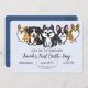 Queues pour nos amis à quatre pattes. Célébrez votre petit en tournant un avec cette invitation d'anniversaire à thème inspirée par le chiot. Ces adorables chiots, un bernois, un corgi, un bulldog français, un husky et un shetland qui sortent pour l'aventure, sont un grand hic pour tout amoureux des chiens ou propriétaire de chien. C'est une invitation parfaite pour vos amis et votre famille en toute occasion. Offrez-vous le style chiot, ajoutez ce design à votre collection. DROIT D'AUTEUR © 2023 Pauwels Design, Chien Art - Tous droits réservés.
