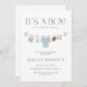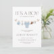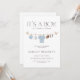 Celebrate your little MVP with this “It’s a Boy” baby shower invitation featuring a watercolor football, jersey, helmet, and mini sneakers hanging on a twine clothesline. Soft blue tones and minimalist fonts make this perfect for a boy baby shower with a sporty yet sweet theme. Fully editable for your event details.