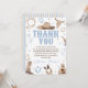 Send a big "Thank You" from the wild west! This matching thank you card features a rustic cowboy hat and desert elements in blue and tan. Perfect for thanking guests for attending your son's "How the West Was One" first birthday celebration. A sweet and stylish way to show your gratitude.