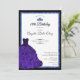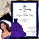 This elegant blue 18th birthday debut invitation has a blue printed glitter dress, a blue tiara crown, and a custom photo on the back with a personalizable template to create your own invitation. The template is customizable in the listing editor and is also available as a digital download that's printable after you personalize it. It's a formal and elegant design for a milestone birthday.