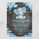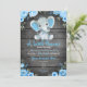 Invitation Blue Elephant Baby shower invitation, garçon rusti