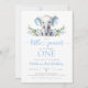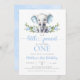 Bleu éléphant floral petit garçon d'arachide 1er anniversaire invitation.