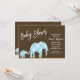 Invitation Blue Elephants Brown tendance Baby shower moderne