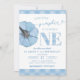 Blue En vichy Preppy Citrouille garçon 1er anniversaire Invitation
